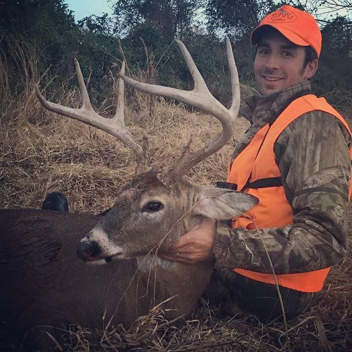 As dawn broke on Saturday, the deer movement that had been so good the two previous days had slowed. I was hunting a different area out of a box blind that covered a large area of cut corn with some wooded draws in between. Around 1700, I saw a buck working his way to the north. After confirming he was big enough to shoot, I waited for him to come through the hedgerow and into the open. When he appeared, I took the shot and he ran probably 40 yards before piling up. Although he wasn’t the once in a lifetime giant I stabbed a couple days before, he was a great buck that I was happy to put my tag on. In the five years I’ve gun hunted Missouri, I’ve tagged out the first day 3 times. It’s pretty easy to love this state. We had 5 guys in camp the first week an all 5 were successful. Pretty tough to beat those odds.